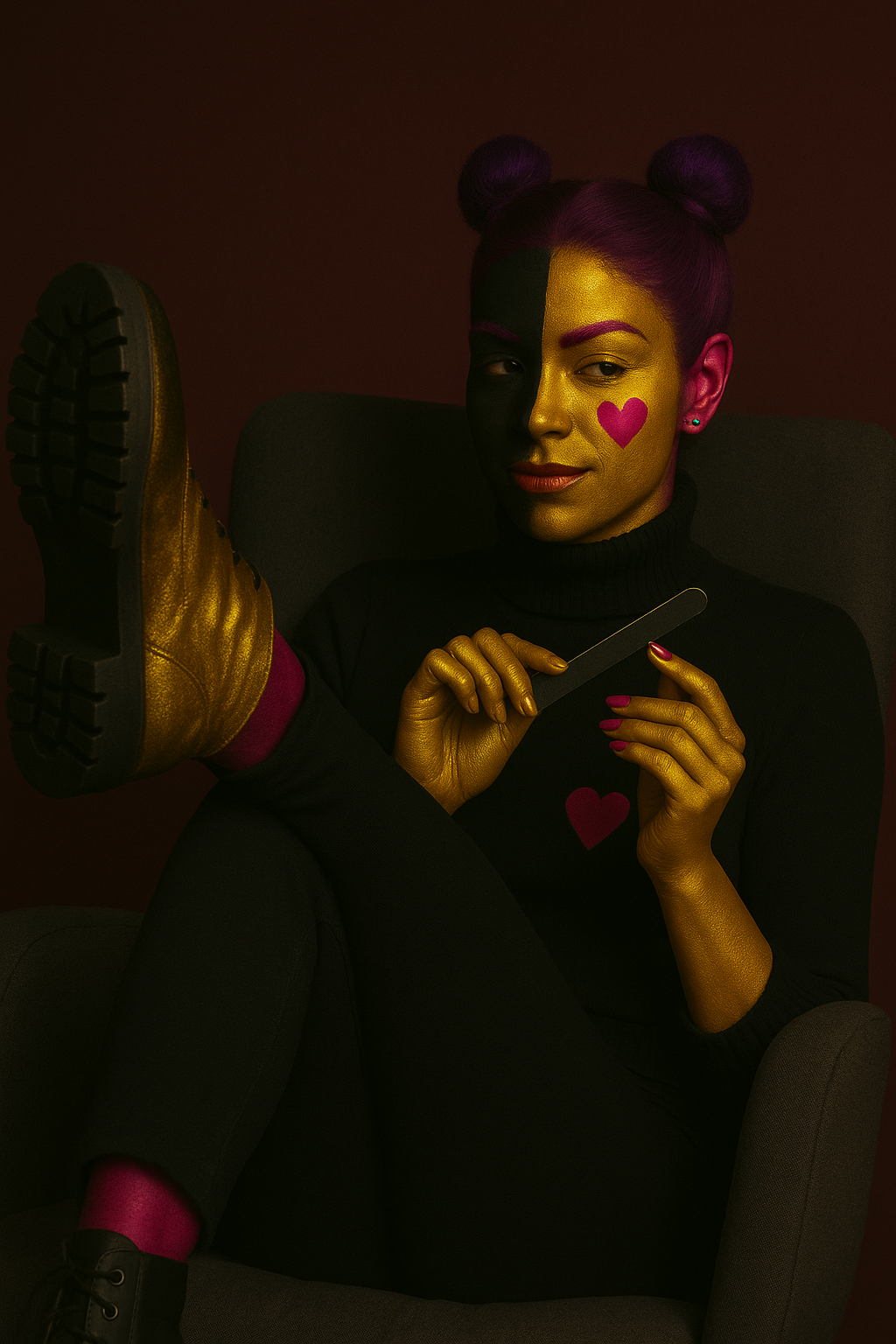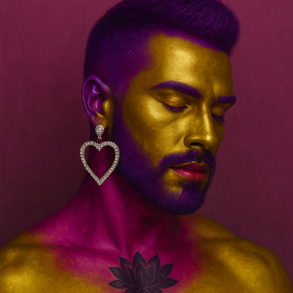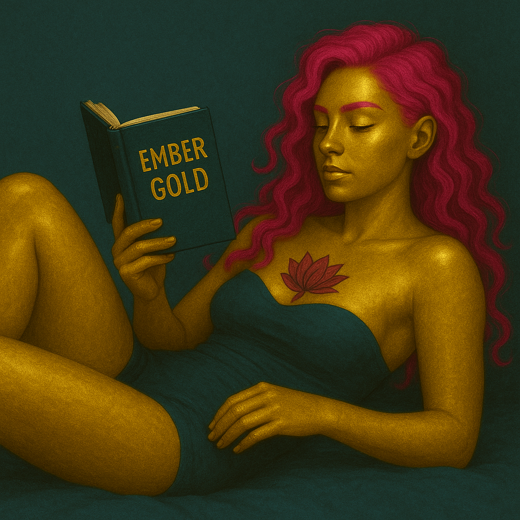 The visuals you see here are not tied to specific works. They embody the world of Ember Gold: a space where culture and gender move freely, where beauty is never fixed and where light and dark constantly collide. Like the stories themselves, Ember’s image shifts with age, hue and color, refusing to stay the same from one moment to the next.