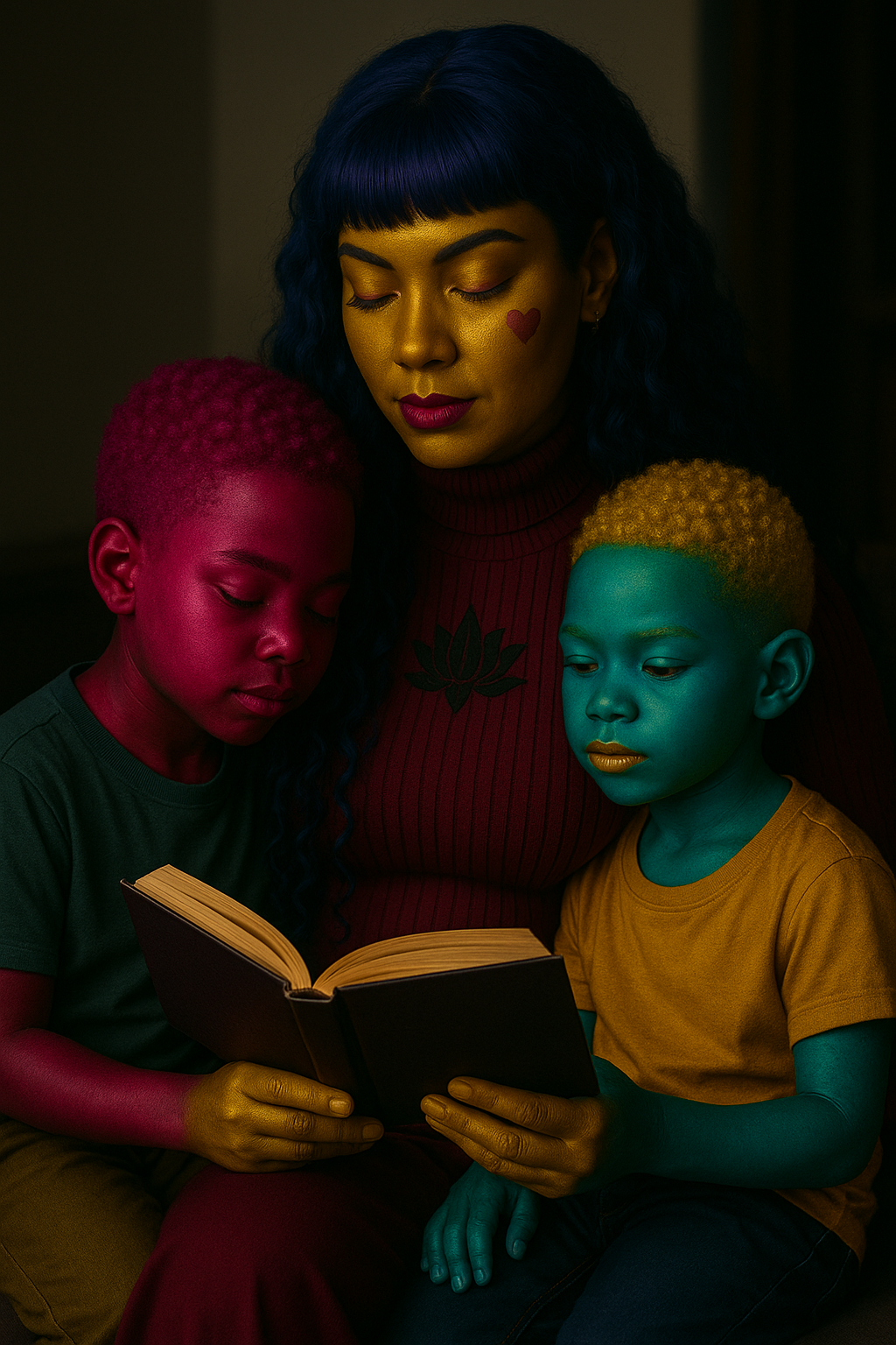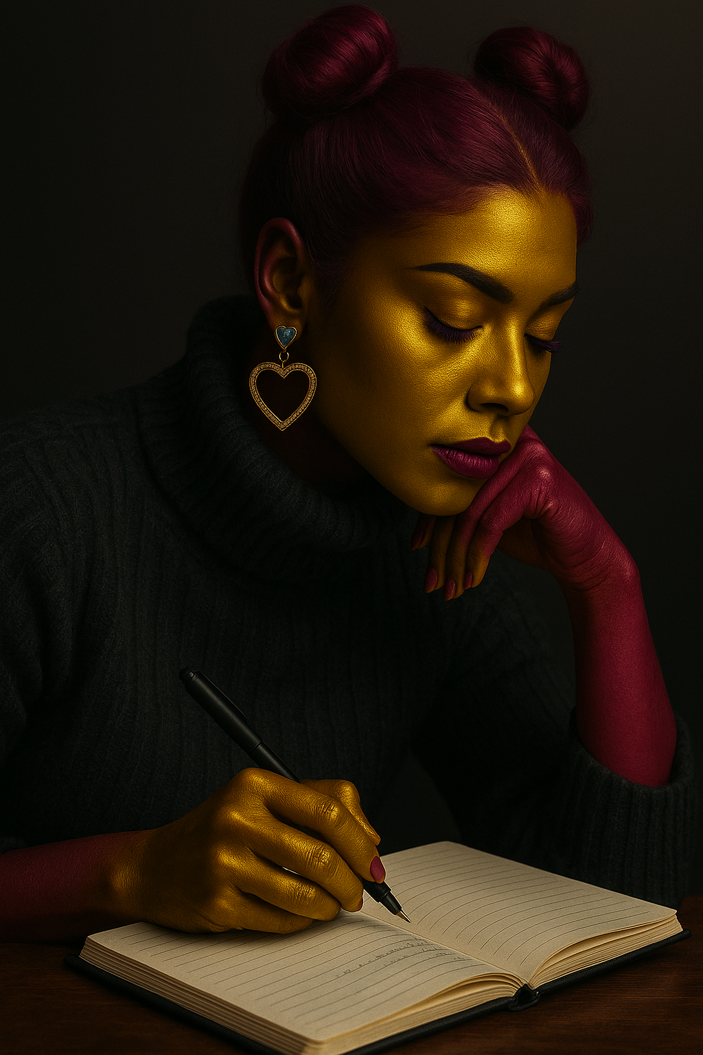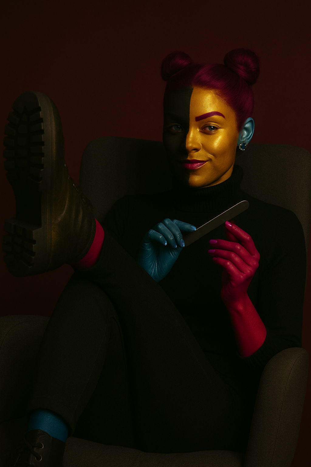 The visuals you see here are not tied to specific works. They embody the world of Ember Gold: a space where culture and gender move freely, where beauty is never fixed and where light and dark constantly collide. Like the stories themselves, Ember’s image shifts with age, hue and color, refusing to stay the same from one moment to the next.